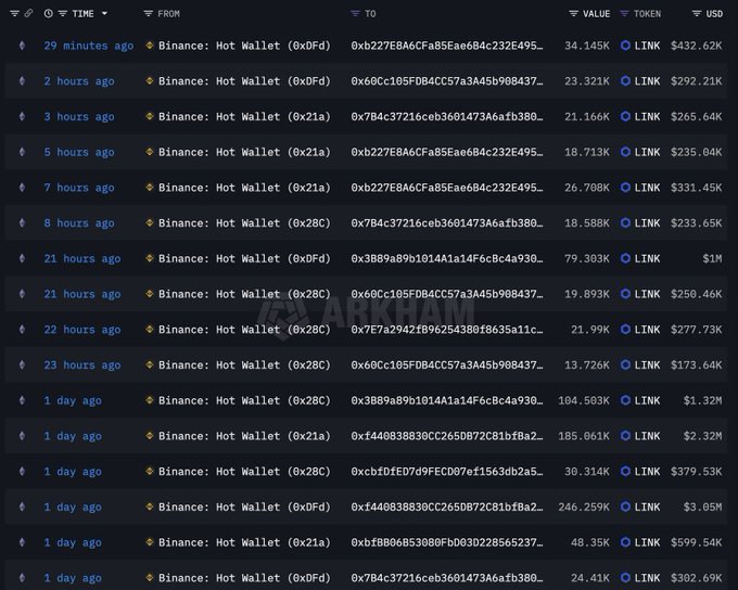 LINK), ongeveer $19,8 miljoen, van Binance