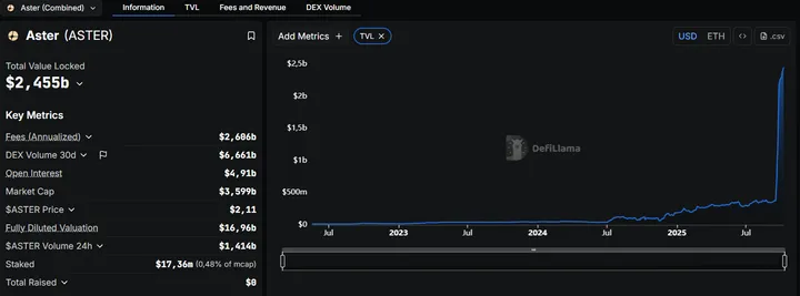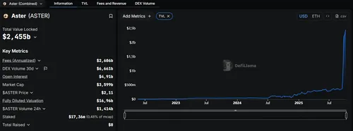 De totale vastgezette waarde (TVL) van Aster schoot de voorbije weken met meer dan 500 procent omhoog, tot $2,4 miljard volgens