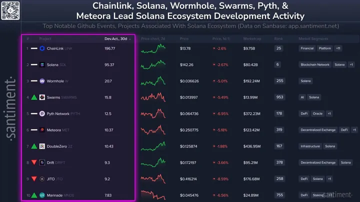 Santiment-data spant Chainlink de kroon als het gaat om ontwikkelingsactiviteit op Solana de afgelopen 30 dagen. En dat is helemaal niet zo vreemd als je beter kijkt.