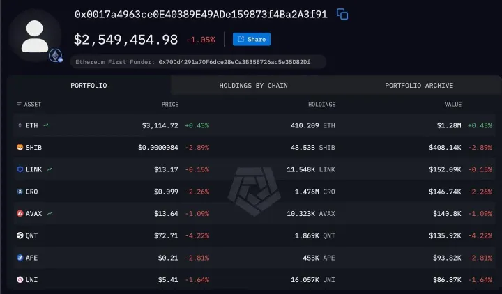 SHIB-wereld. Een oude, ervaren wallet – bij Arkham getagd als "