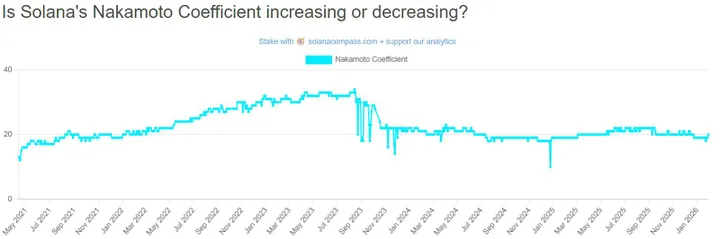 Daardoor concentreren stakers zich bij de grootste partijen. Historische steunmaatregelen, zoals stake pools en matching door de Solana Foundation, verzwakken.