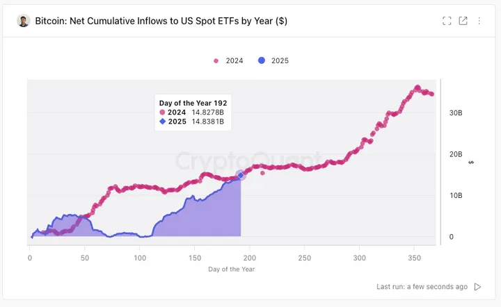 Fidelity trok $137 miljoen aan in de week en $99 miljoen deze maand, met een jaartotaal van $2,2 miljard – een stuk lager dan de $11,9 miljard in 2024. Bitwise deed het goed met $55 miljoen in de week en $1,1 miljard over het hele jaar.