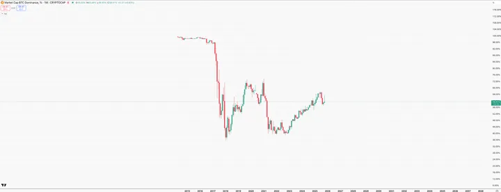 Bitcoin Dominance is historisch gezien hét signaal voor altseason. Wanneer de