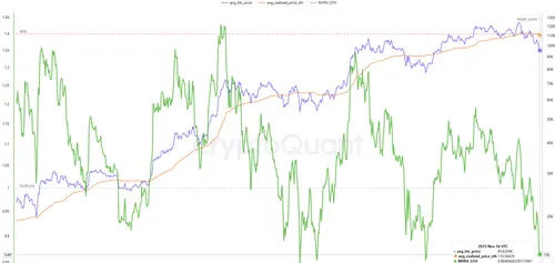 Voor nu: geen vuiltje aan de lucht bij de grote speler. Sommige onchain-cijfers knipperen groen voor een heroverweging. Laten we duiken in de signalen dat de bodem nadert.