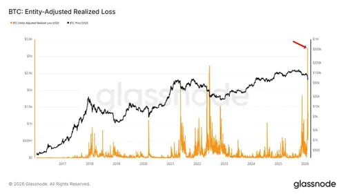 Volgens CryptoQuant en analist IT Tech schoot het 7-daags gemiddelde van netto gerealiseerde verliezen omhoog naar zo'n $2,3 miljard. Dat maakt deze uitverkoop vergelijkbaar met de grote crashes: de piek van 2021, de Luna/FTX-ramp in 2022 en de correctie van medio 2024. IT Tech schrijft: