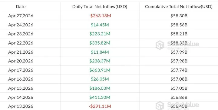 Daar komt nog iets bij. De Amerikaanse spot-bitcoin-ETF’s zagen op 27 april een netto uitstroom van $263,2 miljoen en op 28 april nog eens $89,7 miljoen. Dat zet de boel op scherp, want juist die fondsen waren de afgelopen weken een belangrijke rugwind voor