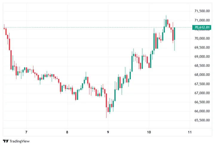 CoinDesk omschreef de recente beweging boven 70.000 dollar als een herstel na de terugval richting ongeveer 65.000 dollar.