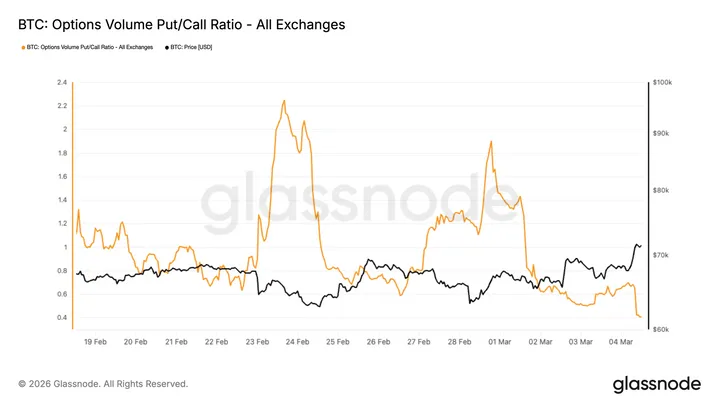 Voor bullish beleggers ligt de focus nu op twee niveaus. Eerst moet Bitcoin de zone rond $70.000 overtuigend terugwinnen. Daarna komt de regio rond $75.000 in beeld, waar Glassnode in de optiemarkt toenemende interesse ziet.