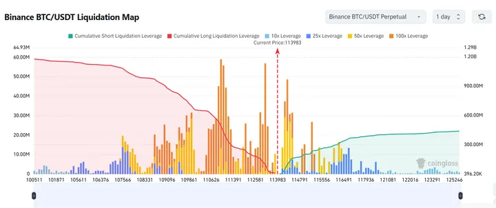 gegevens van CoinGlass ligt er nog $15 miljard aan Bitcoin-shortposities op de loer als de koers richting $120.000 klimt.