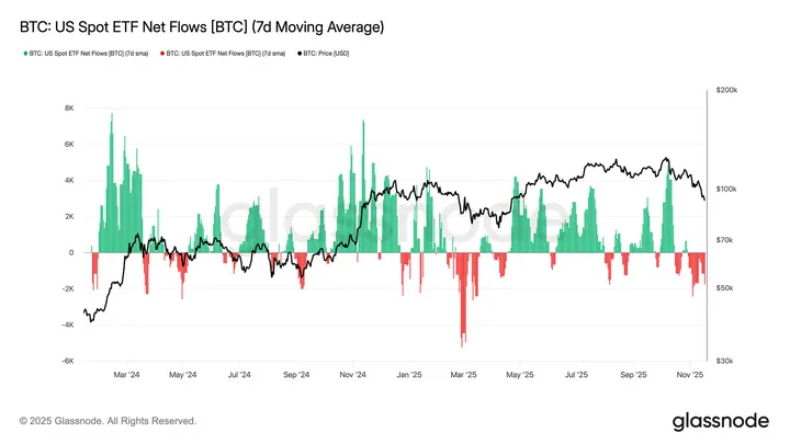 Kijk naar de ETF's: volgens Sosovalue.com liepen er in november bijna $3 miljard aan netto uitstromen op, met een piek van $523 miljoen op één dag bij BlackRock's iShares Bitcoin Trust (IBIT).