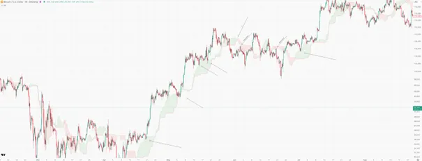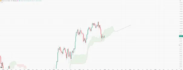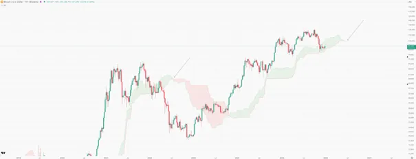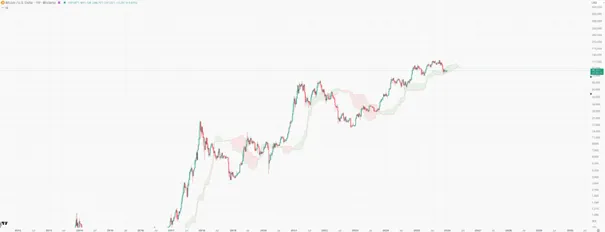 deze cloud gaat gedragen. Zolang Bitcoin onder de bearish cloud blijft, is de