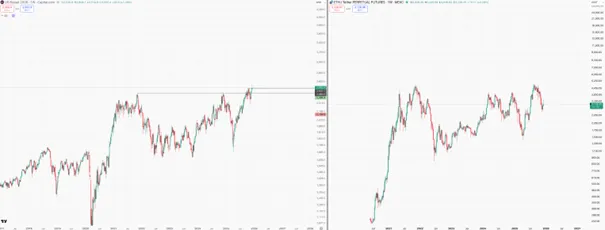 lijkt in structuur en timing vaak mee te bewegen met de Russell, en in eerdere