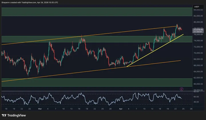 Wanneer Bitcoin erin slaagt om boven $80.000 te breken en daar stand te houden, komt volgens de analyse de volgende weerstandszone rond $88.000 tot $90.000 in beeld. Dat gebied kan dan het volgende doel worden voor de markt, mits het handelsvolume en de bredere marktomstandigheden de uitbraak ondersteunen.