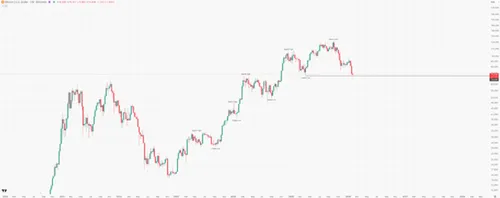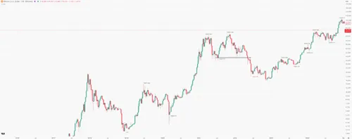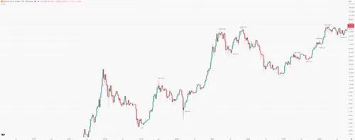 74.000 dollar is momenteel de laatste grote higher low op macro-niveau. Deze