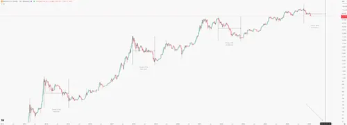 Bitcoin hier structureel onder sluit, vooral op weekly-basis, dan wordt deze