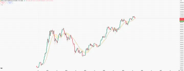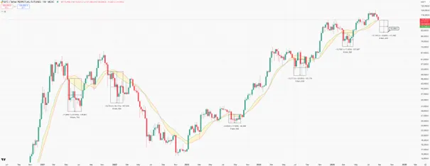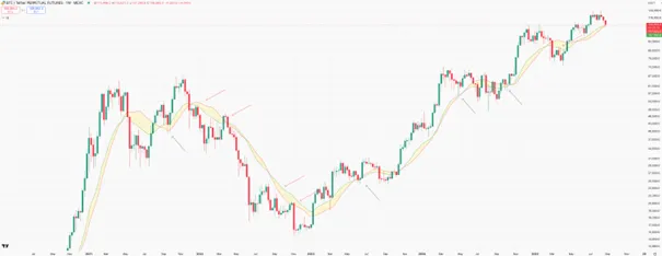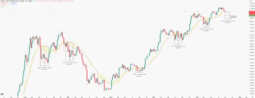 exponentiële moving average (EMA) en de 21-weekse simple moving average