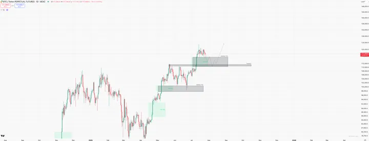 zones ligt rond de $111.000 — een gebied dat in sommige long-term projections
