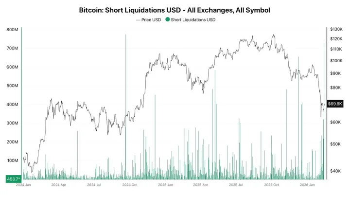 In 2025 herbouwden shorts zich tijdens dips, tot de drop naar ~$60.000 recent een nieuwe golf van $736 miljoen liqs triggerde. Dat was geen sterke spot-instroom, maar vooral overvolle shorts die moesten dekken. Na deleveraging stabiliseert het vaak: als spot-vraag meekomt, kan het leiden tot een scherpe short squeeze.