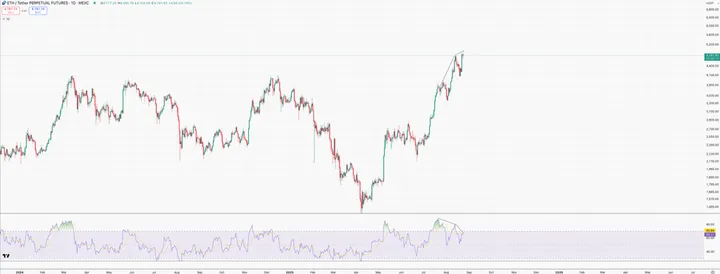 dagelijkse grafiek ontstaat op dit moment een triple bearish divergence.