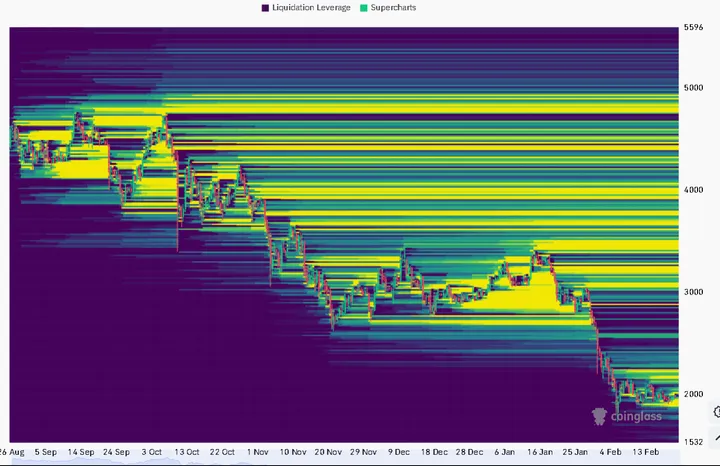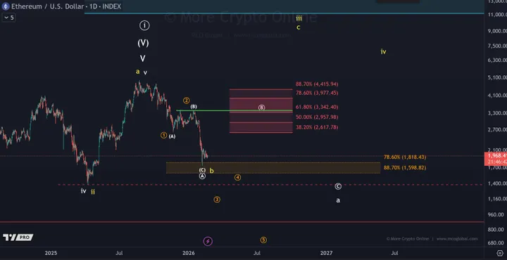 ETH) noteert momenteel rond de $1.975 (op 22 februari 2026), na een dip van bijna 60% vanaf de piek in oktober 2025.