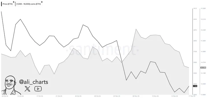 Santiment-data liegt niet: whales hebben hun saldi flink zien krimpen, zelfs toen de prijs even opveerde. ETH tuimelde bijna 15% omlaag in de laatste week, en dat terwijl het al 39% onder de augustus-top van $4.950 hangt.
