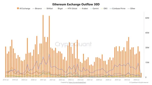CryptoQuant zette daar nog een grotere claim naast: volgens een Quicktake van 10 april 2026 is in het eerste kwartaal van 2026 ongeveer 82 miljoen ETH van exchanges weggehaald.