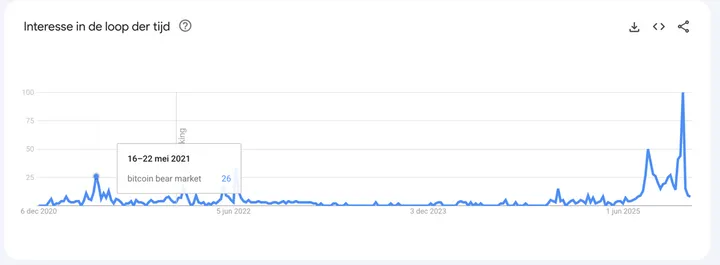 high in Google searches voor “Bitcoin bear market” is op zichzelf een krachtig