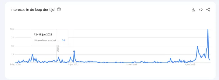heeft de zoekterm “Bitcoin bear market” een nieuw all-time high bereikt. Dat