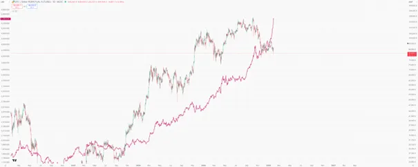 dat betekent niet dat Bitcoin structureel aan goud vastzit.