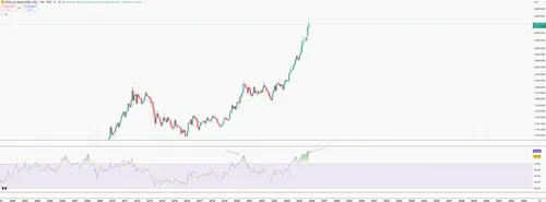 RSI is goud inmiddels duidelijk overbought. De RSI (Relative