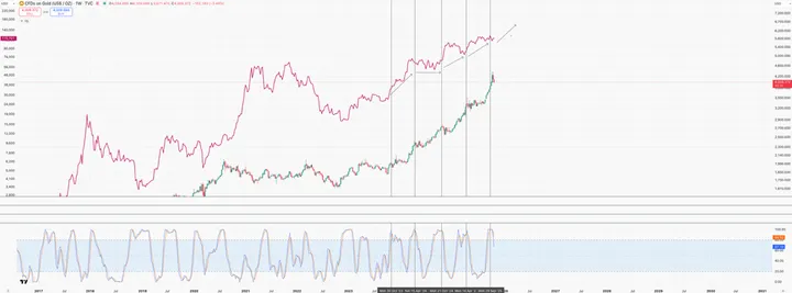 terugkijken naar eerdere cycli, zien we een herhalend patroon tussen goud en