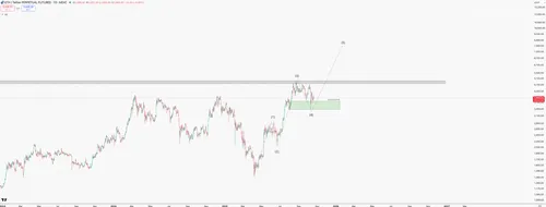 Wave 4 in een duidelijke demand zone rond de 25.000 dollar. Na een periode van