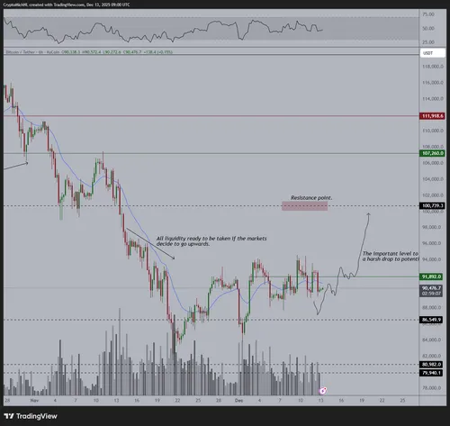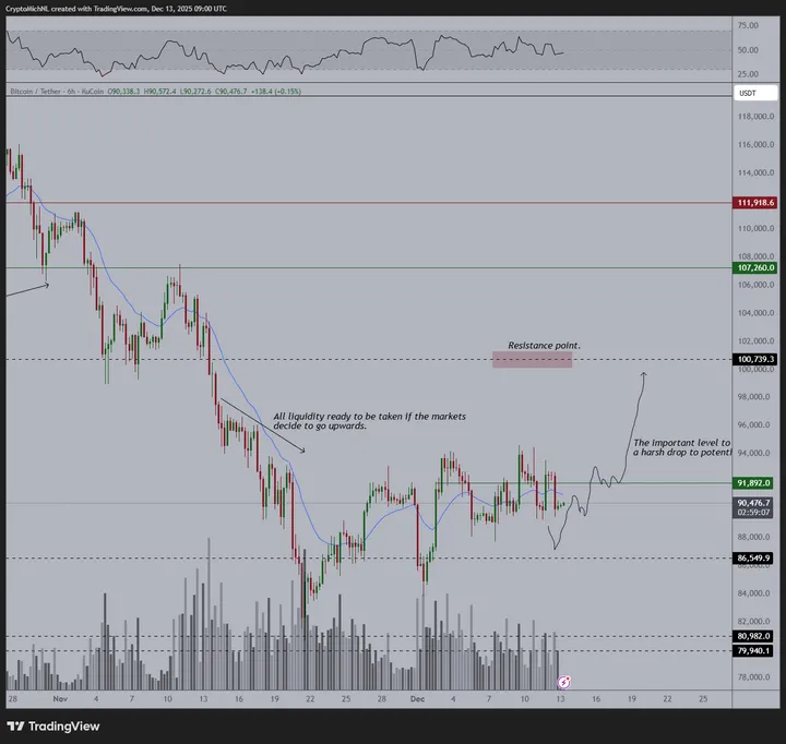- Weerstand: $92.000 – een doorbraak hier kan de route naar $100.000 vóór 2026 versnellen