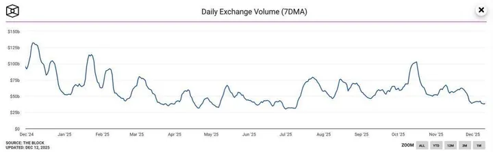 Eind november en begin december bleef het volume moeite hebben om boven de $300-$350 miljard te blijven, met meerdere dagen onder de $200 miljard – niveaus die we al maanden niet meer zagen.