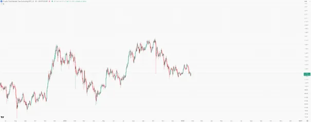 crypto’s, exclusief Bitcoin. Het is dus in feite de market cap van Ethereum