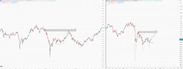 chart van Total3 analyseren, zien we dat er momenteel een triple tap is