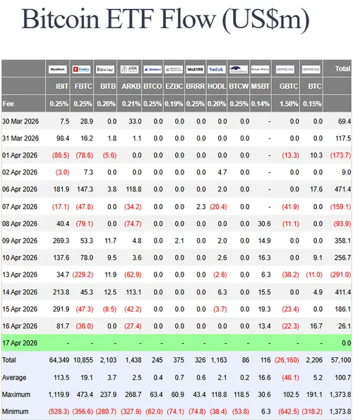 zagen op 16 april opnieuw netto-instroom, na een sterkere dag eerder.