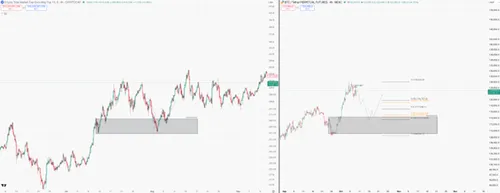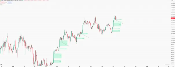 bearish value gaps boven de prijs. Wanneer de koers corrigeert, worden die