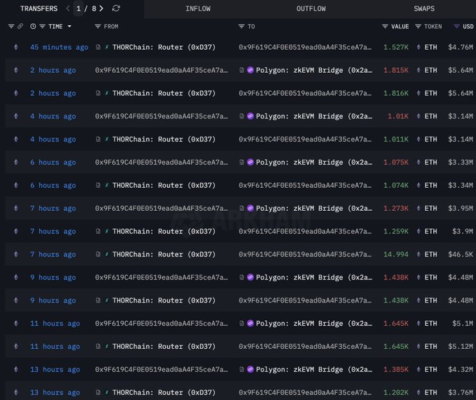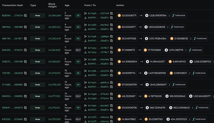 spotte een whale die agressief BTC dumpt voor ETH: in dagen 1.969 BTC omgewisseld voor 58.149 ETH, inclusief een recente swap van 502,8 BTC voor 14.500 ETH ($45,24M). Dit toont hoge risicobereidheid – whales verwachten hogere rendementen van ETH.