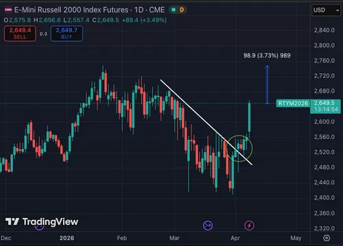 Reuters meldde op 8 april 2026 dat de Russell 2000 tijdens de opluchtingsrally op Wall Street beter presteerde dan de grotere indices. Barron’s schreef dezelfde dag dat de index zelfs dicht bij het verlaten van correctieterrein kwam. De rally hing samen met de tijdelijke adempauze in het conflict rond Iran, wat beleggers weer iets meer richting risicovollere assets duwde.