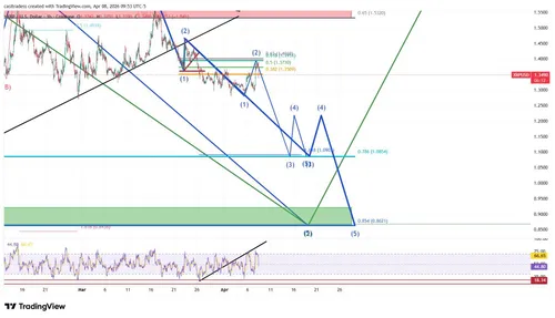 die juist stelt dat de recente bounce kan uitlopen op een nieuwe terugval richting $1,085, met in een zwakker scenario zelfs $0,86 als dieper niveau. Dat maakt het technische plaatje meteen een stuk minder eenduidig.