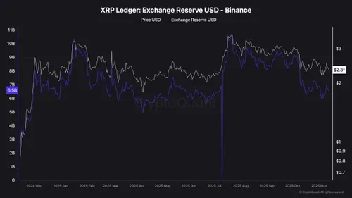 XRP – goed voor zo'n $336 miljoen – is in één etmaal van gecentraliseerde exchanges gehaald. Dat is een van de steilste dalingen in reserves van de afgelopen maanden, volgens CryptoQuant-data.