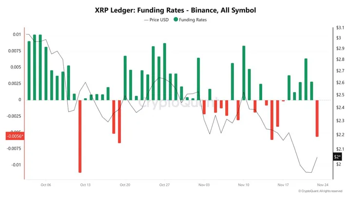Een van de scherpste alarmbellen komt van Binance, de grootste beurs qua volume. De open interest – dat zijn alle openstaande futurescontracten – voor XRP is gezakt tot het laagste punt sinds november 2024. Dat is een flinke klap: van pieken boven de $1,7 miljard nu naar zo'n $504 miljoen, met een kort dipje naar $473 miljoen.