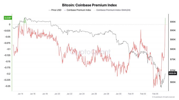 Coinbase-premie positief: Amerikanen kopen weer