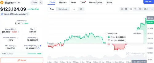 BTC) heeft zojuist een mijlpaal bereikt die niemand over het hoofd kan zien: voor het eerst in zijn 17-jarige bestaan is de prijs van de grootste cryptomunt boven de $125.000 gestegen.