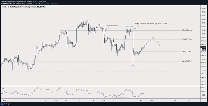 "Dezelfde gedachten als gisteren over #Bitcoin 10k als de prijs boven daily open kan blijven."