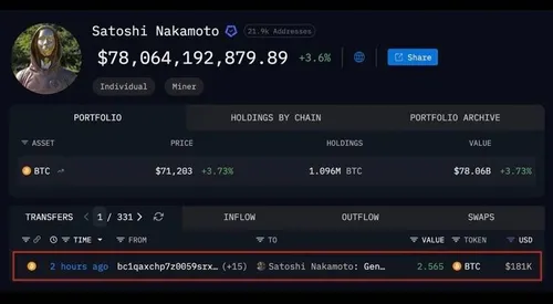 Kleine instromen naar Satoshi-gerelateerde adressen komen wel vaker voor – meestal in de orde van $2 tot $54 BTC, en vaak spam of test-transfers. Maar $181.000 springt eruit. In de community gonst het van speculaties:
