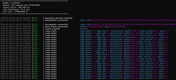 deelde een simpel waarschijnlijkheidsmodel voor 15-minutenmarkten op Polymarket. Het rekent uitkomsten op basis van streefprijs, huidige BTC-prijs en resterende tijd tot sluiting.