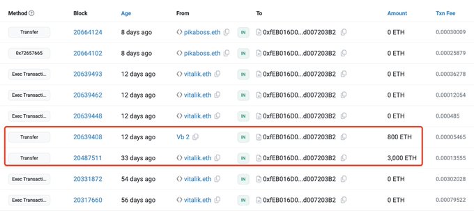 Ethereum is echter ook gedaald als gevolg van recente liquidaties door de Ethereum Foundation en Vitalik Buterin.