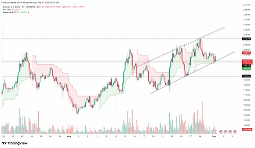 Het blijft zich in een oplopend kanaal bevinden met een gouden kruis dat de bullish trend op de lange termijn bevestigt. De volgende grote weerstand ligt rond de $205. Als het door dat niveau heen breekt, ligt de weg naar $250 en zelfs $300 wijd open. Sommige modellen zijn nog optimistischer en voorspellen dat SOL tegen het einde van het jaar $419 of hoger zou kunnen bereiken als het momentum aanhoudt.